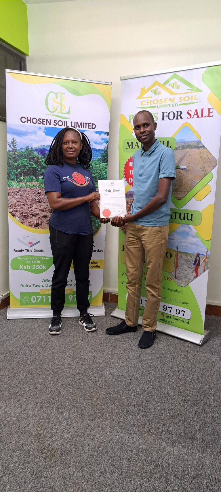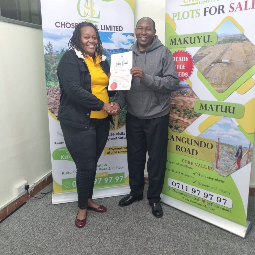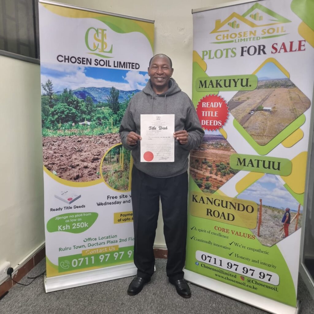 “As a first-time land buyer, I didn’t know where to start. Chosen Soil walked with me step by step, and now I own land at Makuyu Breeze. The process was simple, clear, and stress-free.”